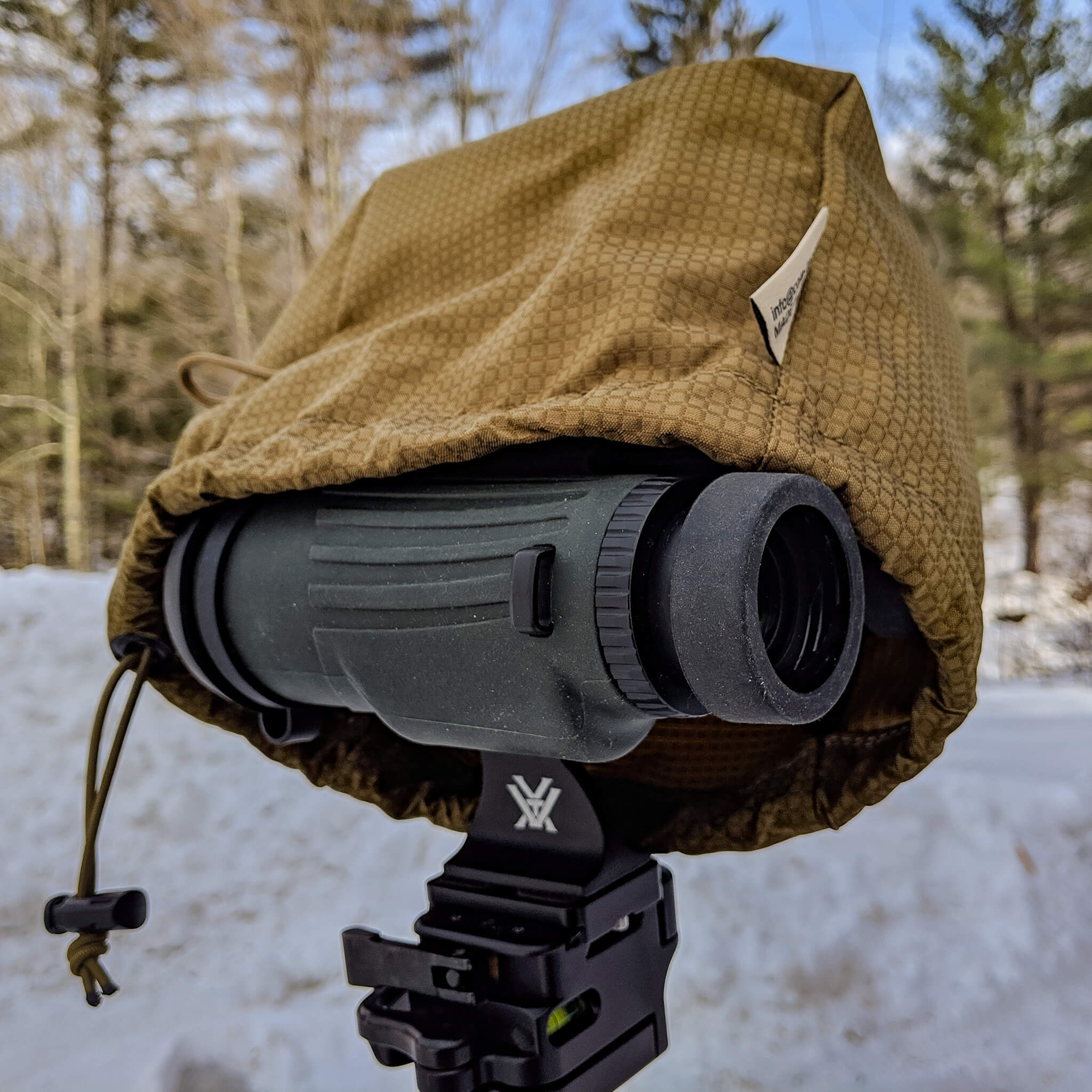 Keep your optics and lasers clean and dry with the Cole-TAC Shower Cap. Made from a water-resistant, lightweight material, this optics cover is the raincoat your binos and spotting scope needs. This advanced material is 30% lighter than 500D Cordura Nylon but just as strong. The seams are double-stitched for extra strength and security. The bungee cord can be adjusted to provide quick installation and removal. The small paracord loop allows you to attach it when not in use. The small size is perfect for a set of binos or a single laser rangefinder. The large size is designed for plate setups that have multiple optics installed. This rugged optics cover is made right here in the USA by a company that stands behind your gear no matter what. Get yours today and keep your optics clean.