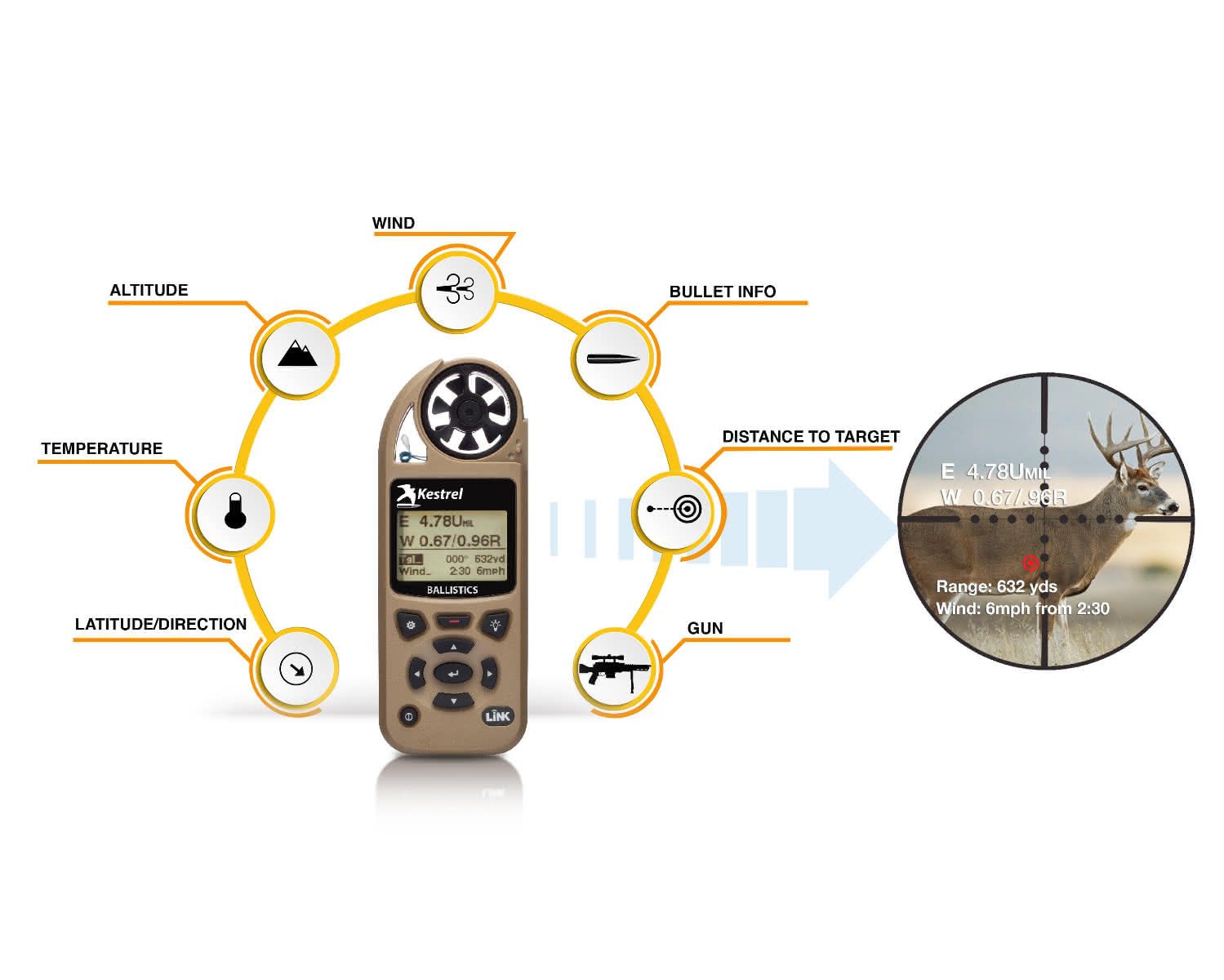- Kestrel LiNK for Ballistics app on iOS and Android provides convenient gun management and backup, access to the Applied Ballistics library of scientifically tested bullet data and the ability to view your Kestrel’s solution remotely on your mobile device.